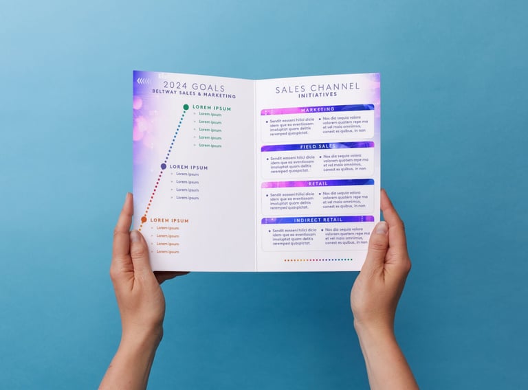 A cohesive set of printed brochures and large-format posters for team-wide distribution and internal display.